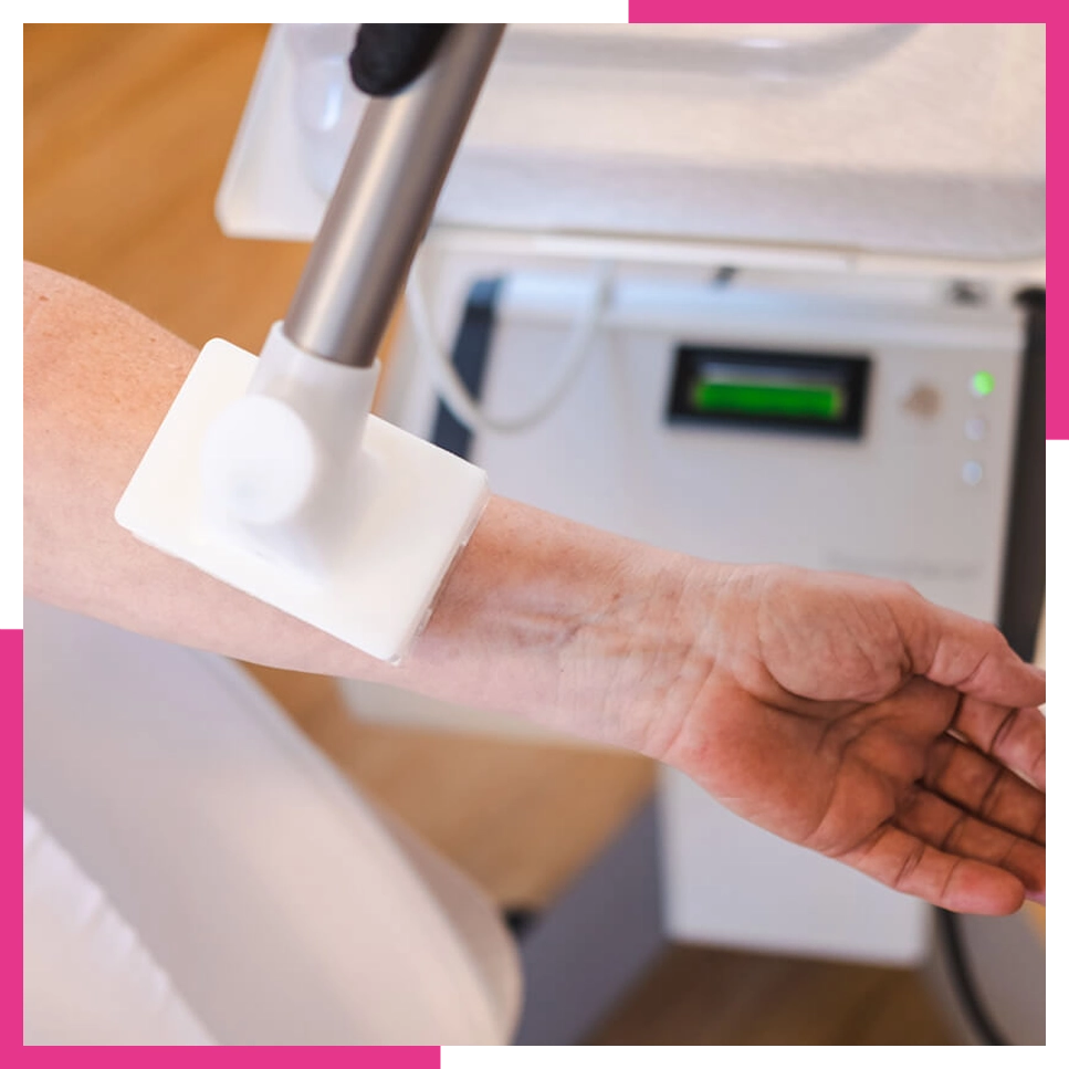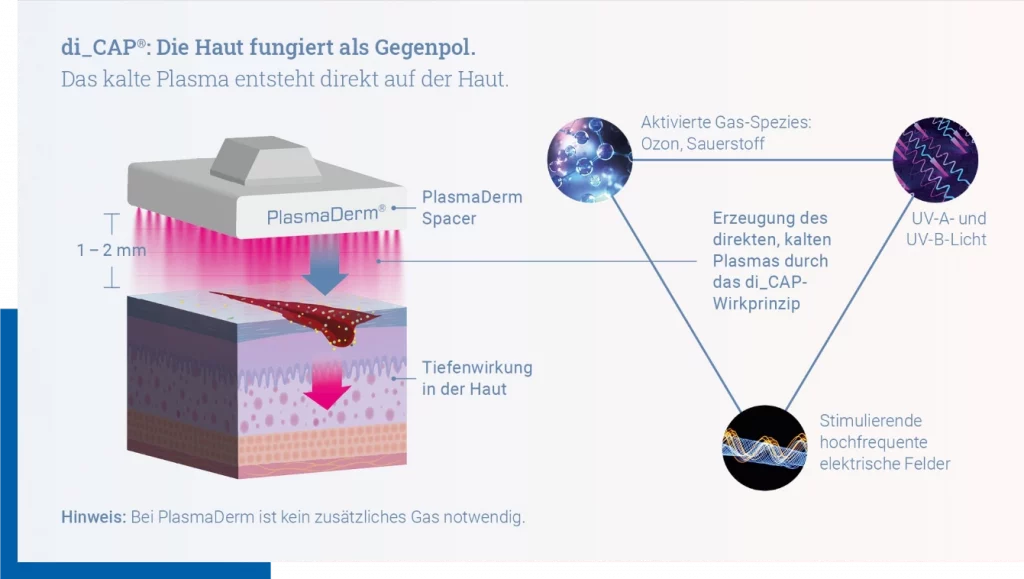 Während der Behandlung wird Kaltplasma gezielt auf die betroffene Hautpartie aufgetragen. Es zerstört schädliche Bakterien und stimuliert die Regeneration von Haut- und Gewebezellen. Dabei bleibt das umliegende Gewebe unversehrt, und die Behandlung ist vollkommen schmerzfrei.